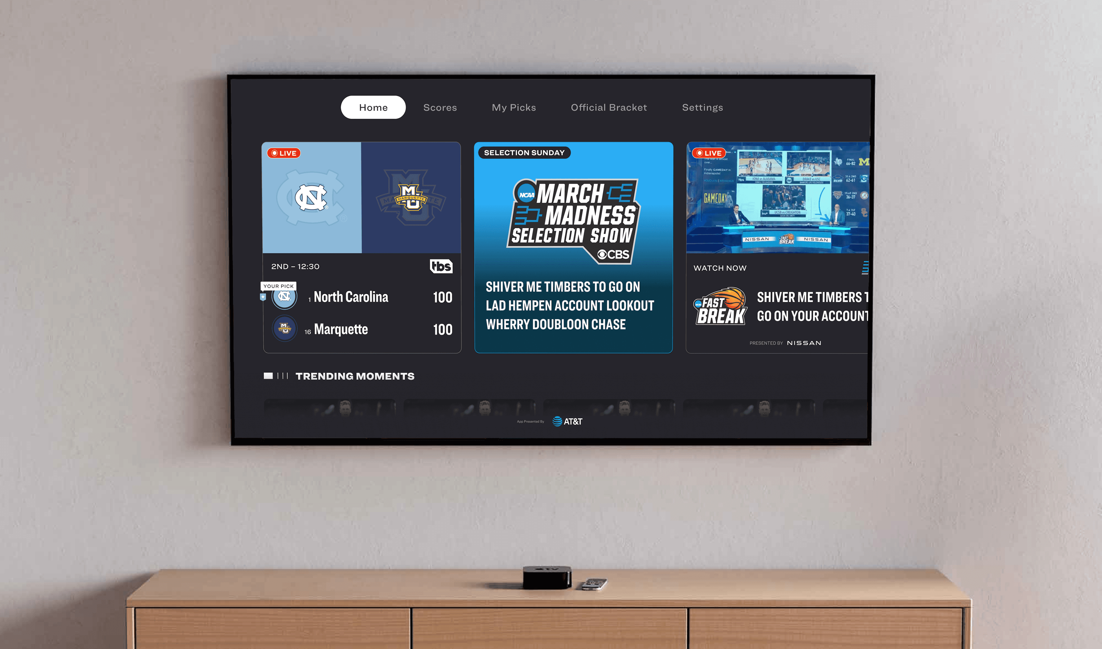 How might we visually design March Madness Home on TV devices so that it looks and feels consistent across NCAA digital products?